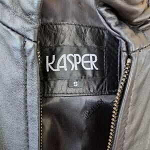 Black Leather Stand Collar Jacket by Kasper Size Small