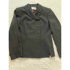 Like new Kasper black pant suit, worn once, beautiful burgundy lining, asymmetrical button closure on the jacket,