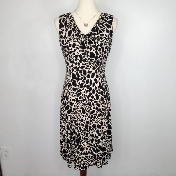 Kasper Black Tan Animal Print Drape Neck Stretchy Sleeveless Classic Dress Sz 4