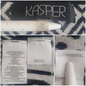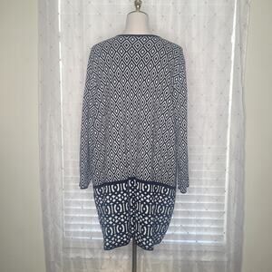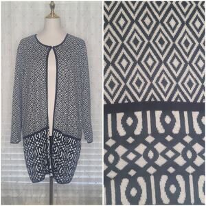 Kasper Black White Geometric Tribal Long Sleeve Lagenlook Tunic Cardigan 2X