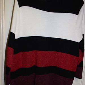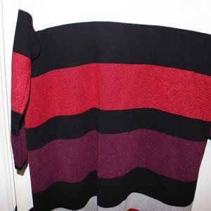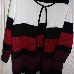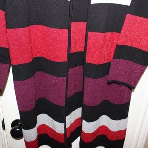 Kasper Black, White, Red, and Purple Striped Cardigan❤️