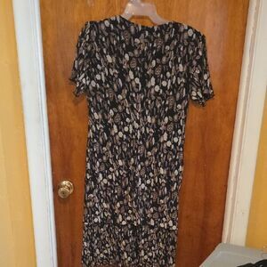 This elegant Kasper dress features a sophisticated black and cream color palette, perfect for both casual and work settings. The short puff sleeves and v-neckline add a touch of modern style to the classic sheath silhouette, making it a versatile addition to any wardrobe.