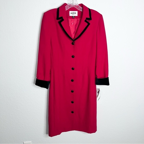 Kasper Blazer Dress Women 4 Red Jacket Suit Crepe Velvet Sheath old money C4