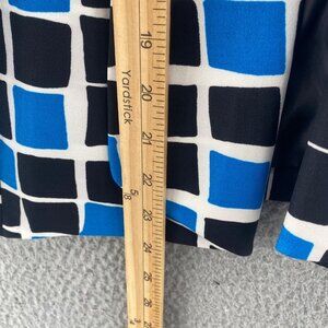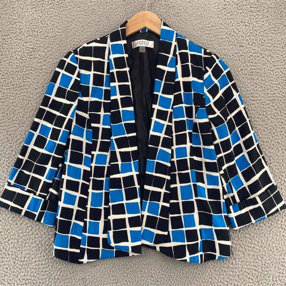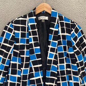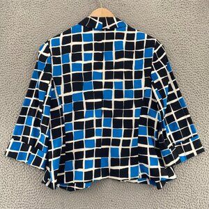 Kasper Blazer Womens 10 Blue Black Pattern Stretch 3/4 Sleeve Shawl Lapel Jacket