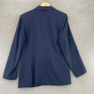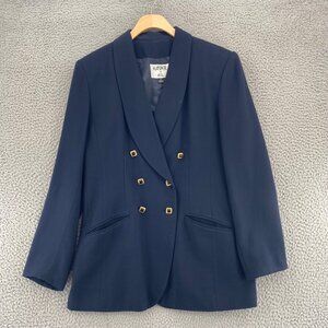Kasper Blazer Womens 10 Navy Double Breasted Button Shawl Lapel Pocket Office