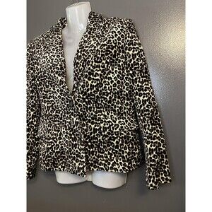 Kasper Blazer Womens 10P Leopard Animal Print Single Button Jacket Petite Brown
