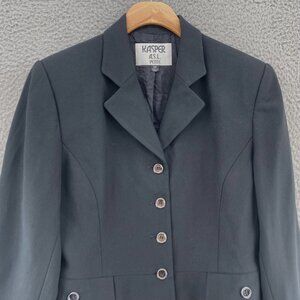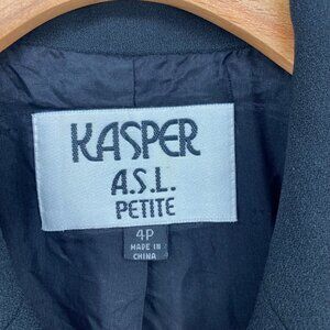 Kasper Blazer Womens 4 Petite Black Button Front Notch Lapel Office Career Work