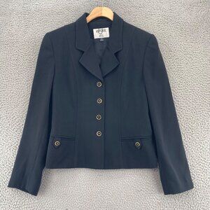 Kasper Blazer Womens 6 Black Button Up Notch Lapel Ribbed Pockets Office Career