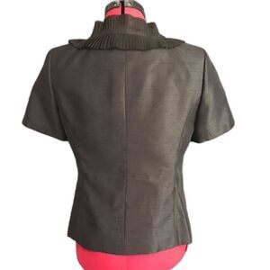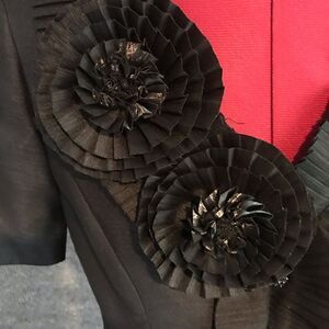 Kasper Blazer Women's Size 4 Black Floral Accents Short Sleeves Ruffles