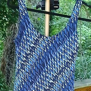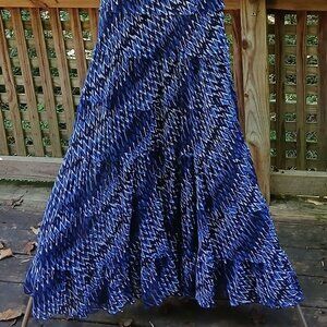 Kasper Blue & White Geometric Print Chiffon Tiered Layered Maxi Dress Sz 4