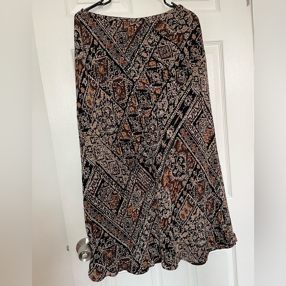 Kasper Boho Midi Skirt Size 8 – Brown & Black Geometric Print