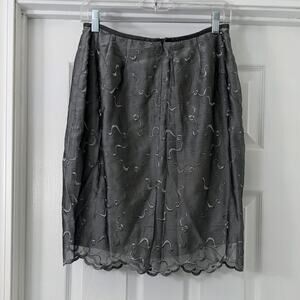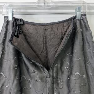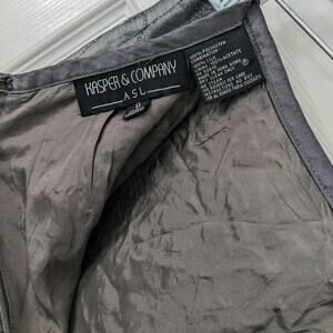Kasper & Company Skirt. Color: Silver Grey. Fully lined with scalloped hem detail. Zipper back closure. Measurements laying flat: 14 inch waist, 22 inch length.