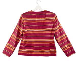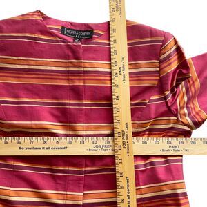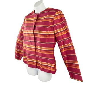 Kasper & Company ASL Women 8P Silk Jacket Career Red/Orange/Gold Striped Lined