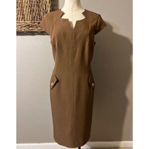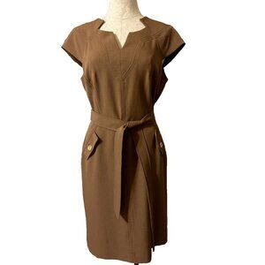 Kasper Dress Brown Gold 10 Short Sleeve Sheath W Belt Career Church Classic