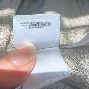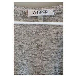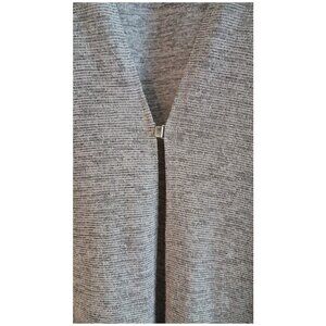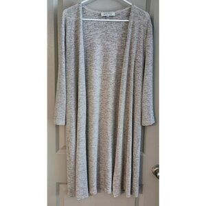 Beige/Black/Grey knit, knee-length duster that's lightweight and provides arm coverage with its long sleeves. A gold-tone clasp closure fastens the duster.