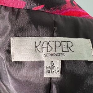 Beautiful dressy jacket in purples, pinks black and white. Great condition.