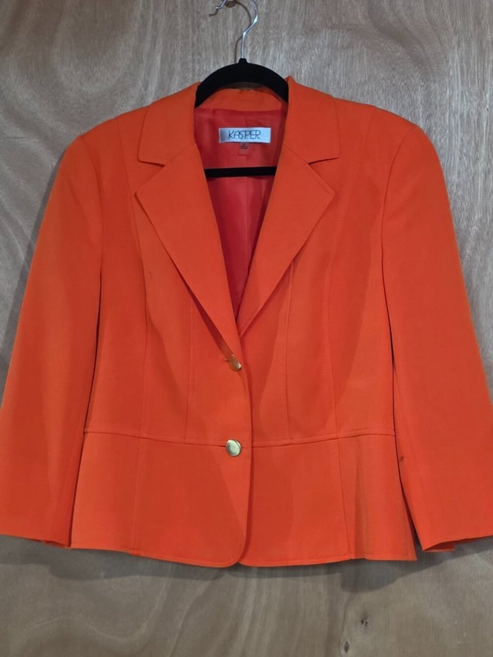 Orange Jacket. Size 12 In good condition. I noticed a few very tiny slight pulls near the bottom, but they are very hard to see.