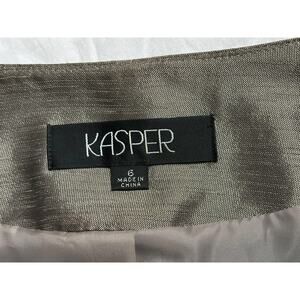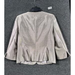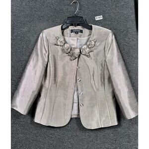 Kasper Jacket Womens 6 Silver Metallic Rosette Neck 3/4 Sleeve Cropped Dressy