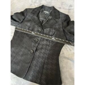 Kasper Jacket Women Size 4 Black Long Sleeve Houndstooth Three Button Blazer NWT