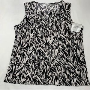 Kasper Knit Jersey Keyhole Printed Blouse Top L