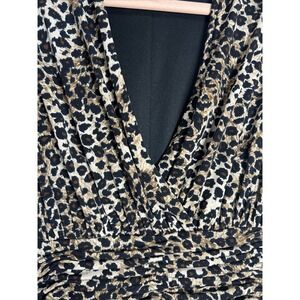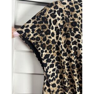 Kasper Leopard Print Cap Sleeve V-Neck Ruched Fit & Flare Stretch Dress Size 14