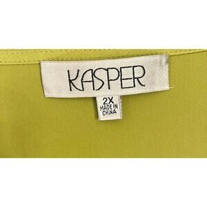 The Kasper Line Green Pleated Satin Tank Top in size 2X is a stylish and versatile addition to any plus-size woman's wardrobe. Featuring a solid green color, sleeveless design with a round neckline, and pleated accents, this lightweight and breathable tank top is perfect for everyday wear. Made from polyester satin, it is easy to care for with machine washable instructions. The pullover closure adds convenience, while the stretch fabric ensures a comfortable fit. Perfect for casual or dressy occasions, this tank top is a timeless basic piece from the trusted brand Kasper. Pit to pit is 24 inches. Top of shoulder to bottom is 27 inches.