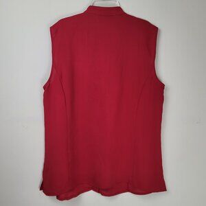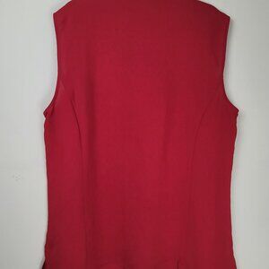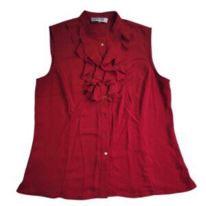 Style Tags: Sleeveless, Modern, Feminine, Professional, Workwear, Bold, Office wear, Contemporary, Essential, Minimal, Ruffle Accent, Daywear, Flowing, Airy, Classic, Structured, Dressy, Professional, Women Workwear, Career, Careercore, Meeting, Social, Business Attire, Gathering, Office Wardrobe, Evening, Work, Party, Concert, Festival, Kasper Blouse Size 14, Ruffle Front Blouse, Red Kasper Blouse, Red Shirt, Kasper Blouse, Holiday, Christmas, Photos, Portrait,