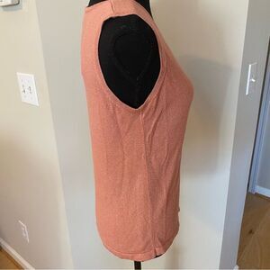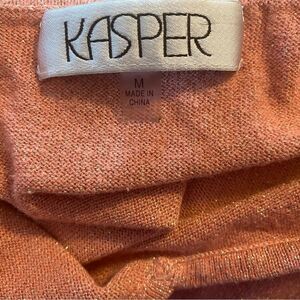 Kasper knit tank top in a size medium. Apricot/blush color with a V-neckline and a slight sparkle in the material. Sleeveless and lightweight, perfect for summer or layering under a blazer. New without tags, never worn, and free of flaws.