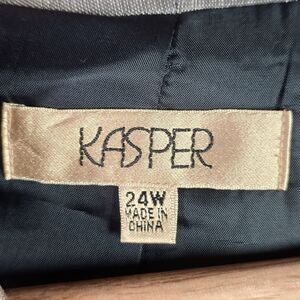 Add a luxe statement to your closet with this Kasper Metallic Cropped Blazer, size 24W. The shimmering silver fabric and open front make it perfect for special occasions, work days, and dressing up weekend looks. Enjoy stylish comfort in a modern silhouette that flatters and fits right. Excellent condition—no visible flaws, ready to wear and shine. Style it for effortless day-to-night transitions!