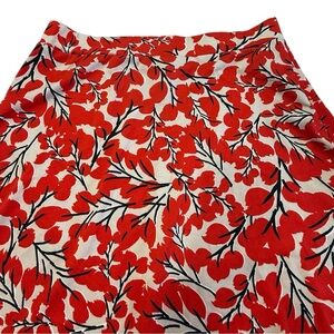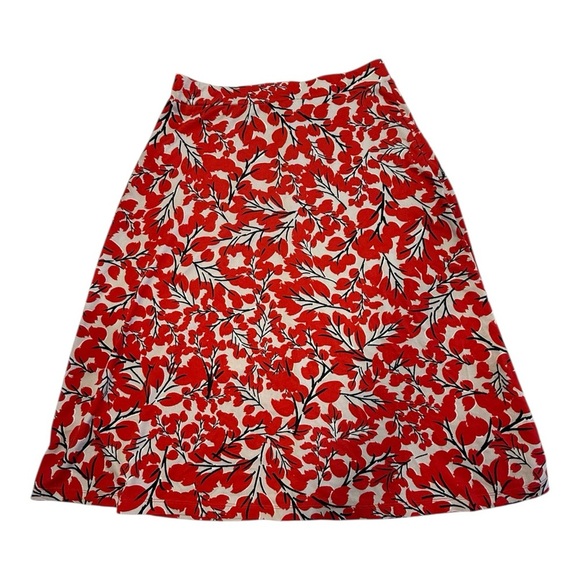 Kasper floral print a-line midi skirt. Size medium. Off white background with red and black floral print. Pull on style. Machine washable. Mint condition.