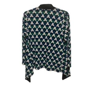 Stylish Kasper jacket with a vibrant multicolor pattern. Features shades of blue, green, and white.