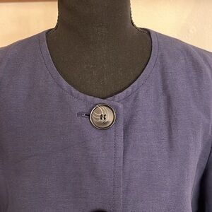 Kasper Navy Linen Blend Plus Size Blazer w/Large Buttons, Sz. 14.