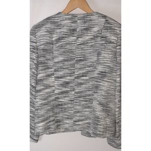 Kasper Separates black and gray long sleeve open front blazer in a size 12. Buttons on front are decorative. Has shoulder pads. Side slit pockets are functional. In very good condition.