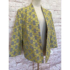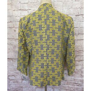 Kasper Open Front Blazer Jacket Size 10 Black Yellow Houndstooth Plaid NEW
