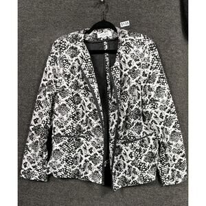 Kasper Open Front Blazer Jacket Womens Size 18W Black White Snake Print Office
