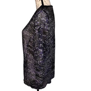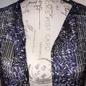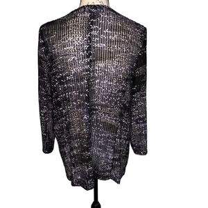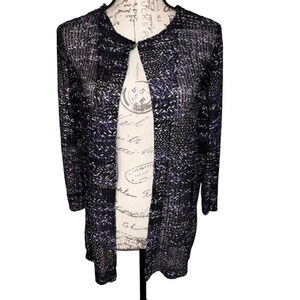Kasper, PL, 3/4 sleeve open knit, metallic, textured lightweight runs small hook & eye closure Cardigan