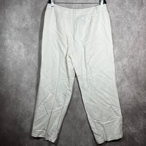 Kasper Pants Womens Size 14 White Linen Blend Trousers Ankle Straight Leg Career casual Work