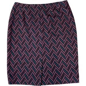 Kasper Pencil Skirt Womens 8 Black/Red Chevron Knee Length Lined Back Zip EUC