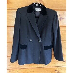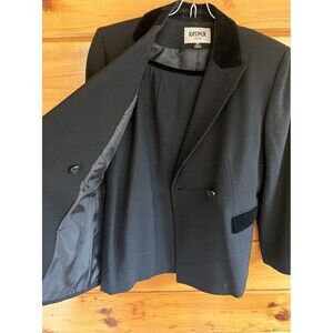 Kasper Petite 100% Wool Black Skirt Suit Velvet Collar & Pockets Size 4P