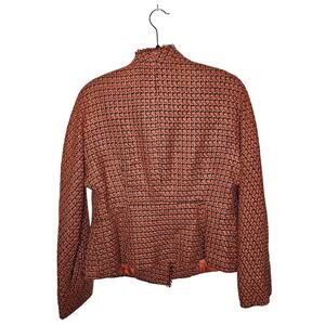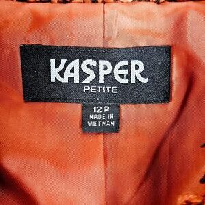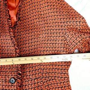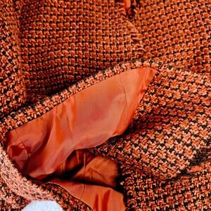 🦃 Kasper Petite Single Button Blazer Orange Black Tweed Woven Fringe Edge 12 P