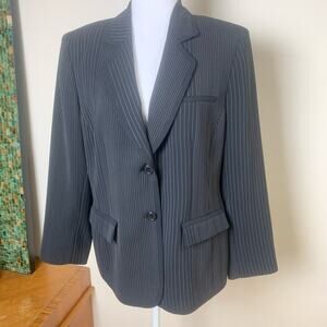 Kasper Petite Size 14P Women's Pinstripe Blazer Jacket Black Classic Business