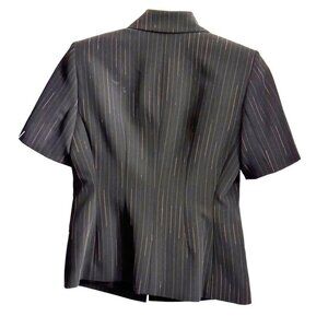 Sleek and sophisticated, the Kasper Petite Women's Two Piece Striped Short Sleeves Suit in size 2P offers a polished, professional look in black. SKU 2156.