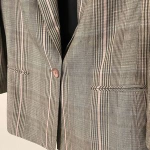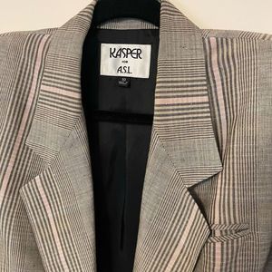 Kasper Plaid Tan Pink Viscose Linen Pockets Lining One Button Sz 10