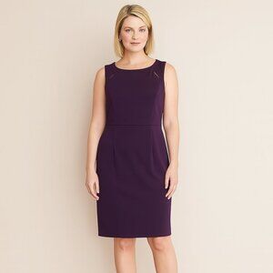 Step into timeless sophistication with this Kasper plum sheath dress, perfect for work, events, or evening outings. Crafted in a rich, deep plum hue, this sleeveless stunner features a flattering fitted silhouette with subtle seam detailing and chic cut-outs at the neckline for a modern twist. Fully lined for comfort and structure, with a secure zip-back closure.