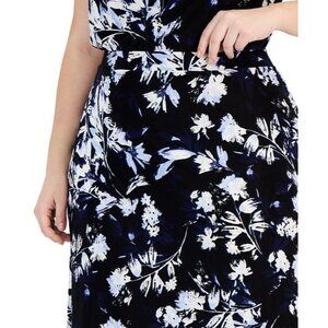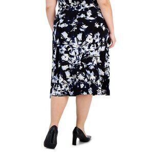 Kasper Plus Size 1X Floral-Print Pull-On Flared Midi Skirt Navy Black MSRP $79