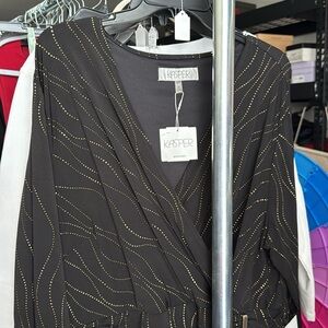 Kasper Plus Size 3/4-Sleeve Knit Wrap Dress Elegant Black Dress Subtle Patterns