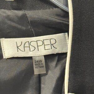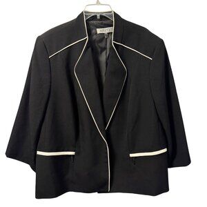Kasper Plus Size Black Blazer With White Piping Size 24W Polyester Blend