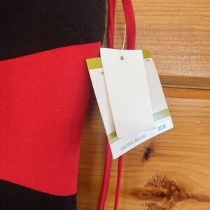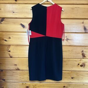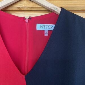 Kasper Poppy Red/Black V-Neck Lined Colorblocked Crepe Sheath Dress Sz 14 - $89
