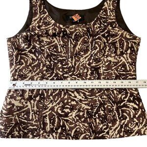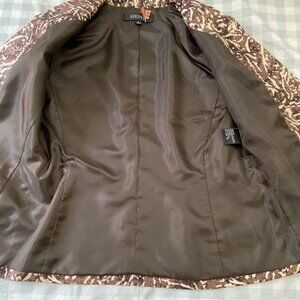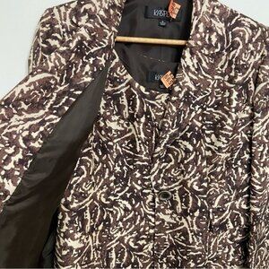 Kasper Silk Blazer Camisole Set Brown Black Cream Pattern US 8