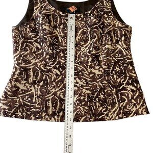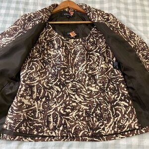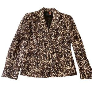 Kasper Pure Silk 2-Piece Blazer Camisole Brown Black Cream Abstract Size US 8